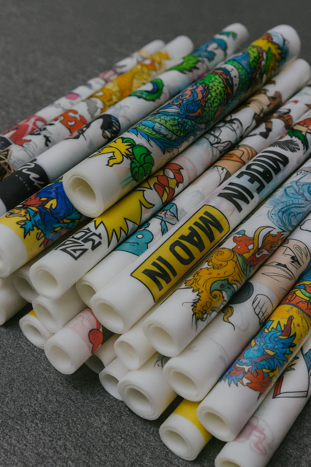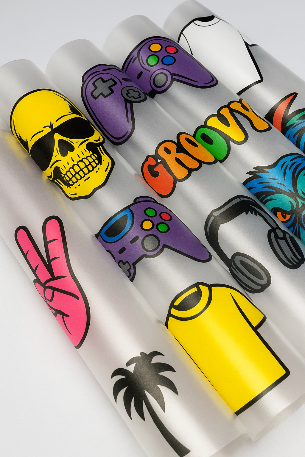 - Printing – The design is printed onto PET film using CMYK colors and a white ink layer for bold, opaque results.